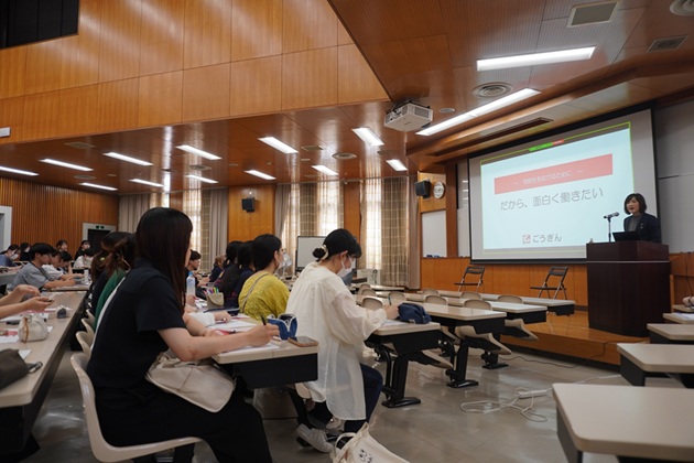 取締役専務執行役員 吉岡佐和子が女性のキャリアアップ、仕事との向き合い方、地域の状況について講演しました。