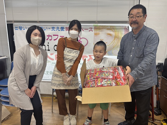 2024年度は子どもの居場所確保や貧困問題に着目し、山陰両県並びに広島県、岡山県、兵庫県の「子ども食堂」および兵庫県の「ヤングケアラー」への支援として寄付を行いました。また、体験型の支援活動として、フードバンクしまね「あったか元気便」のパッキング(食品の箱詰め) や子ども食堂のボランティアも始めました。