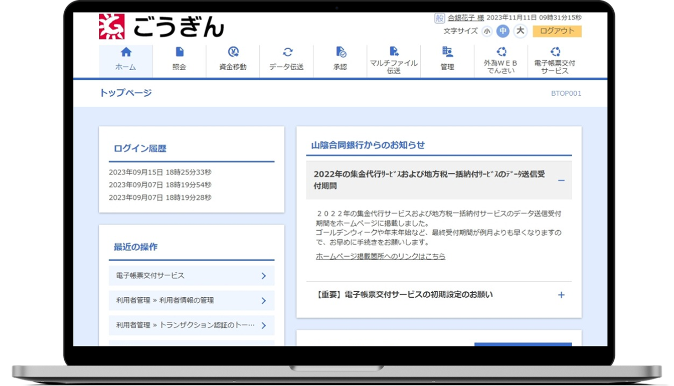 来店することなく、オンラインで資金移動(振替/振込)や各種照会などができます。サービス一覧