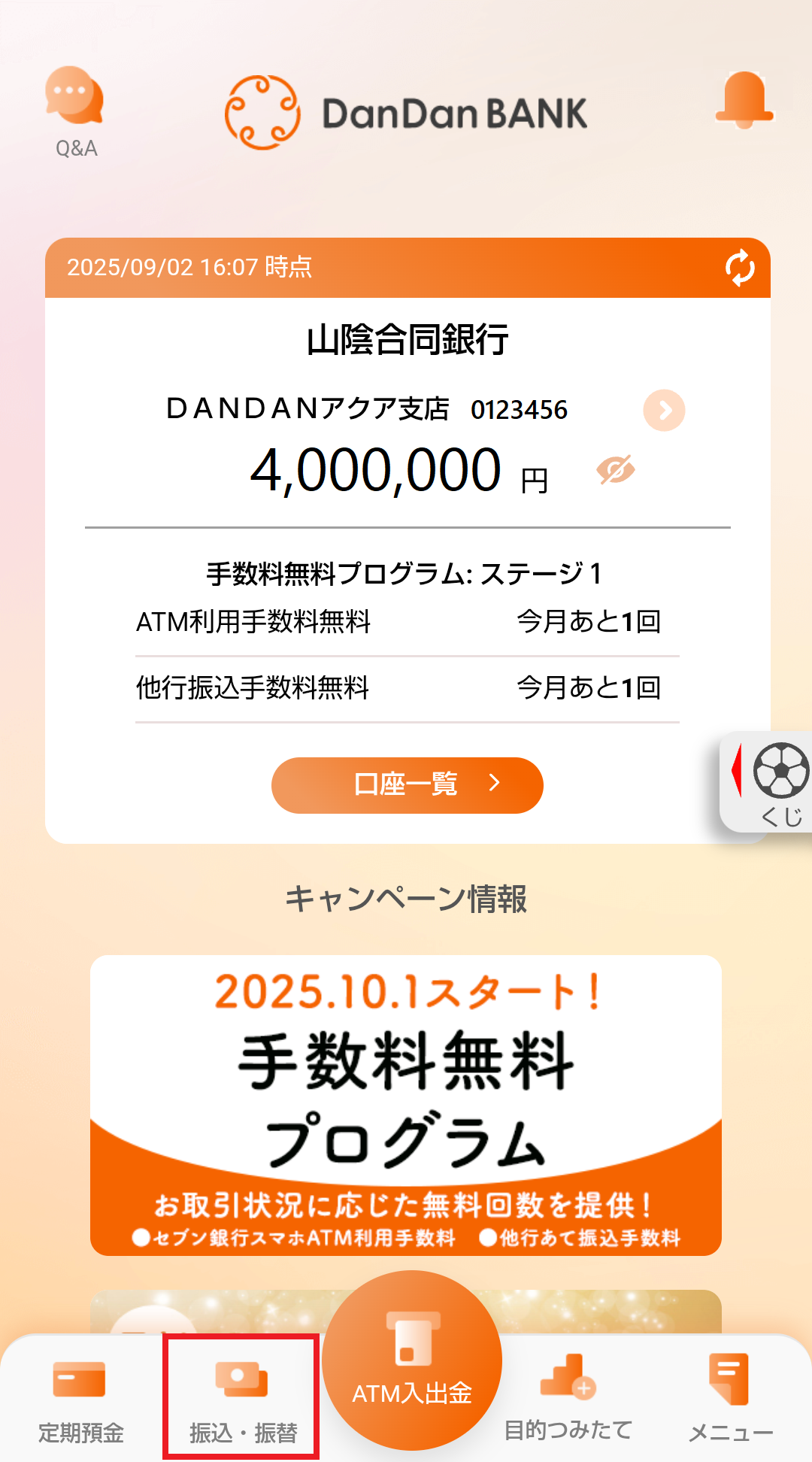 DanDanBANKアプリへ口座登録してください。残高・入出金明細照会のほか、定期預金のお預入れ、振込等のお取引をご利用いただけます。