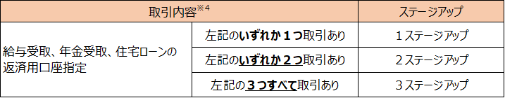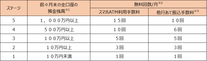 月末時点の預金残高・お取引状況に応じて決定し、翌々月から適用されます。ステージは毎月見直します。