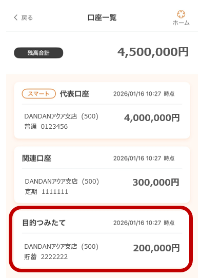 | DanDan貯蓄預金 (目的つみたて)残高 |