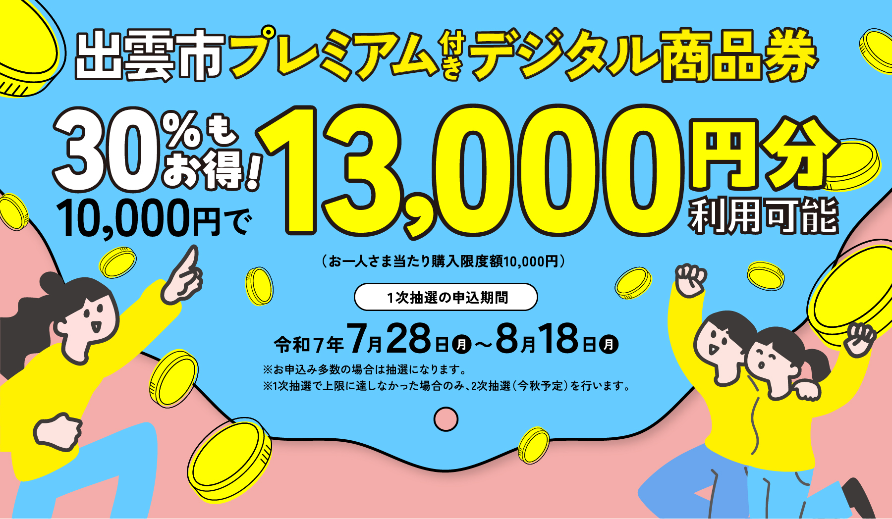 申込時点で出雲市に住所を有する市民 ※ただし、申込多数の場合は抽選となります。
