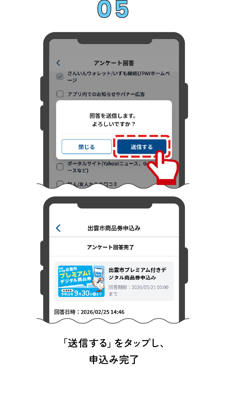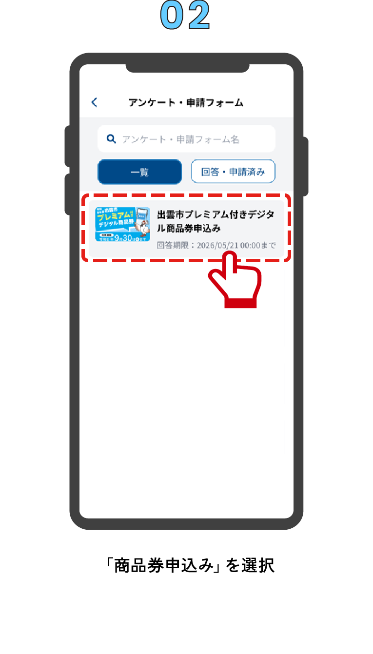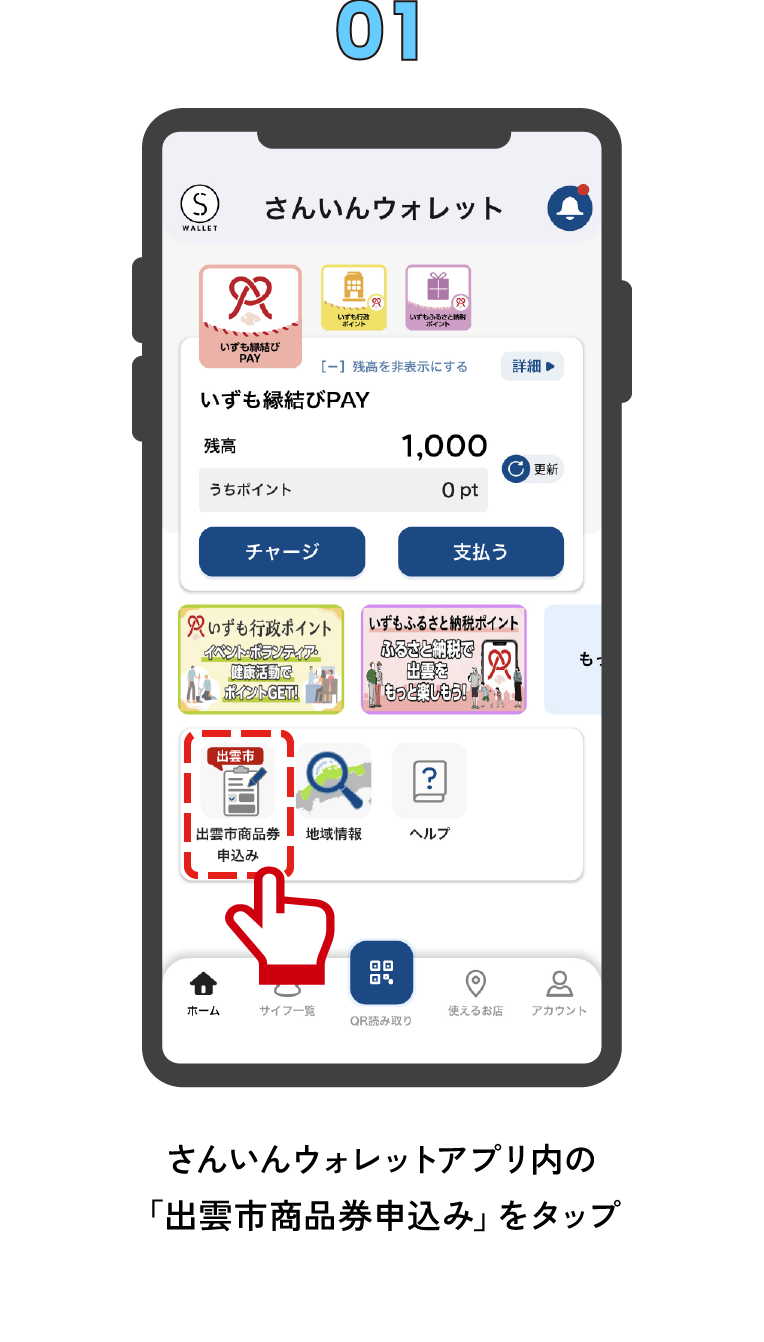 「さんいんウォレット」アプリから、商品券の申込みを行います。