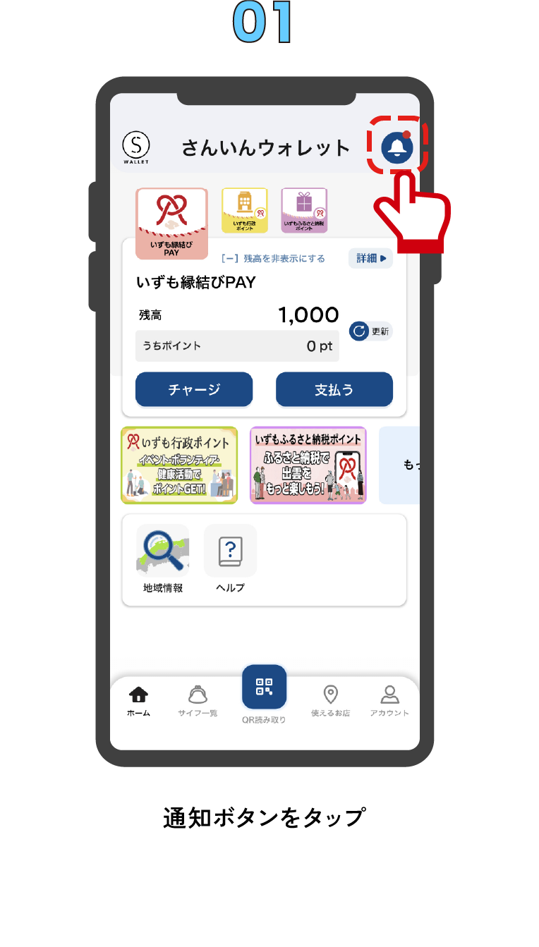 さんいんウォレットアプリ内で通知