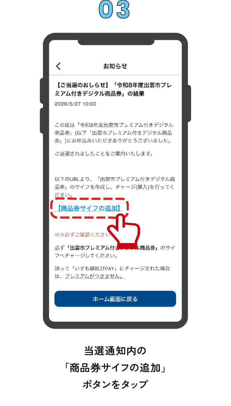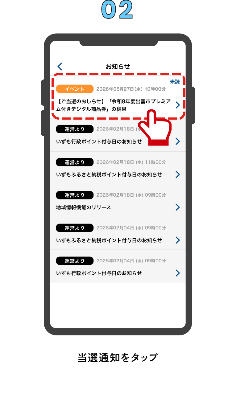 当選通知を確認し、