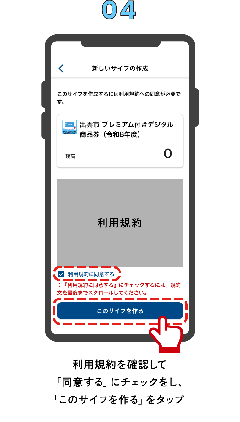 通知内の「商品券サイフの追加」ボタンから、商品券のサイフ作成を行ってください。