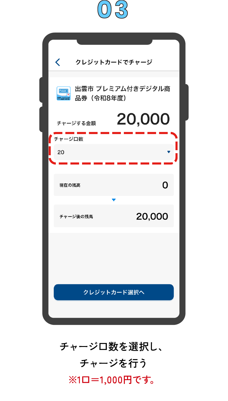 ※1口(1,000円)単位でチャージ(購入)できます。 ※チャージ額に対して50%のプレミアムが上乗せされます。 ※チャージ(購入)上限は、一人あたり20,000円です。