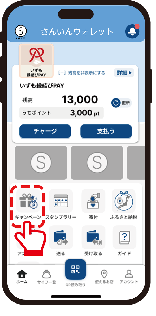・ポイントをご利用いただくには、「いずも縁結びPAY」のサイフの追加が必要です。